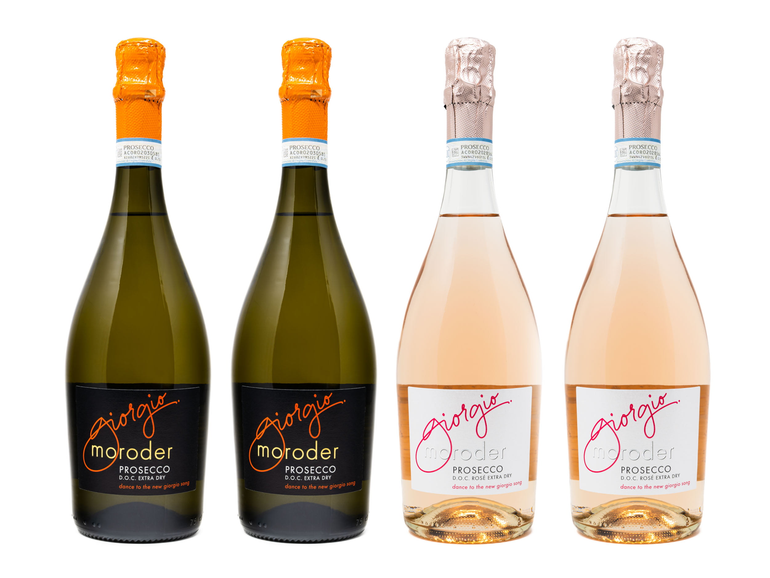 As liquid as disco can get – celebrate Giorgio Moroder’s Prosecco and Prosecco Rosé with this exclusive offer box of 4 bottles for only €48,00 shipped to you (shipping costs may apply) or with local pickup in Val Gardena.